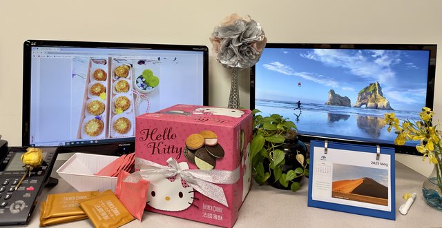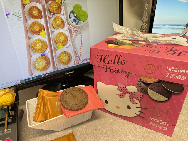 Cảm ơn hộp bánh Hello Kitty dễ thương của thần quạu, sóc em thích mèo Kitty, còn sóc chị thích cún Cinnamon bạn của Kitty đó HT!