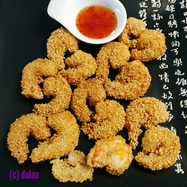 Tôm lăn mè chiên giòn chấm sốt chua ngọt: