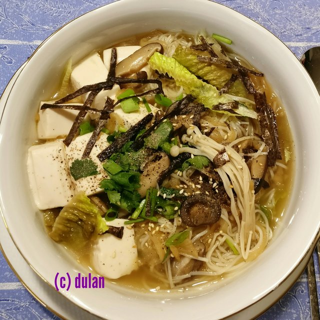 Mì chay với tàu hủ non, nấm: