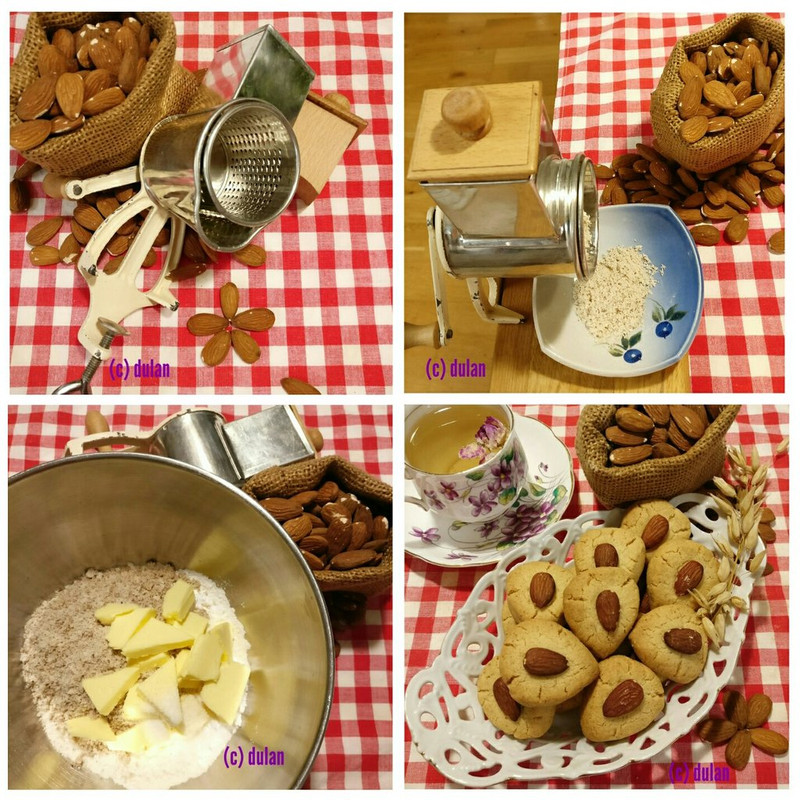 Làm bánh quy với bột mì, bột hạnh nhân, bơ, chút dầu, đường bột, va ni: