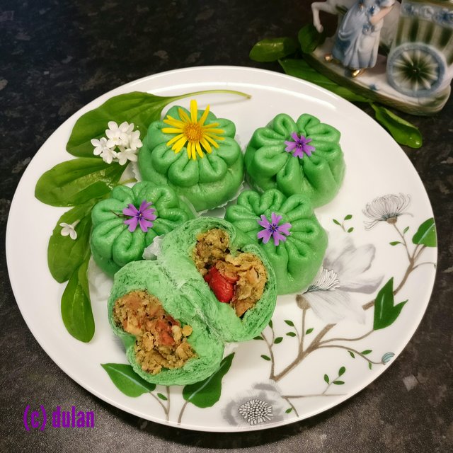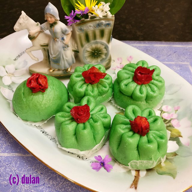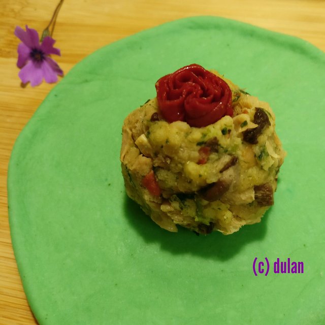 Há cảo nhân chay hình hoa vàng và đỏ (hoa vàng giống bèo áo của Xanh):