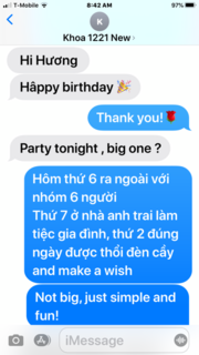 @ O Láng Giềng: Cám ơn O chúc sinh nhật O H hí.