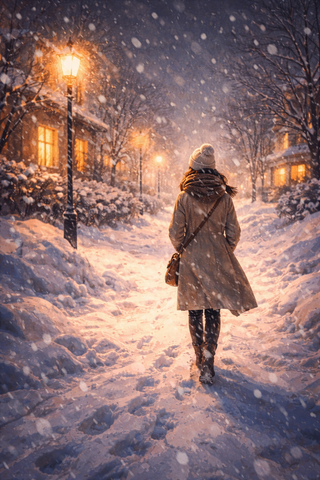 Tôi mặc áo bước ra ngoài đi trong cơn bão tuyết. Phố cũng đã lên đèn. Ánh sáng vàng vọt hắt xuống tấm khăn trắng nuốt khổng lồ, tấm khăn đang liệm đi những yêu thương hạnh phúc và cả nhớ nhung , mong đợi.
