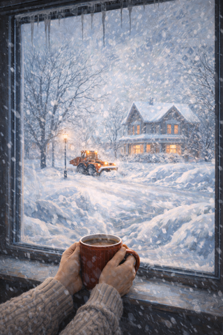 Vâng, tôi đang đứng bên cửa sổ với tách cà phê trên tay, ngoài kia tuyết vẫn không ngừng rơi, con đường vẫn im ắng không có một bóng xe chạy qua, không có một người đi bộ nào đang đang bước trên một dòng sông trắng xóa.