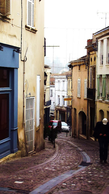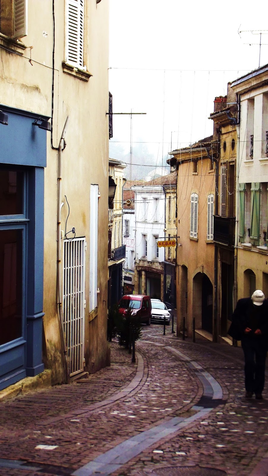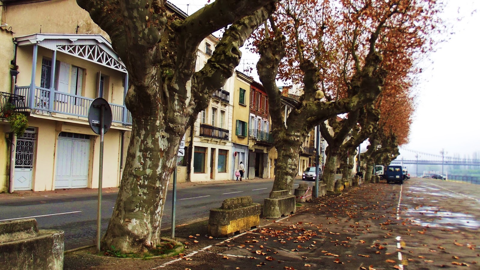 La ville est essentiellement implantée sur la rive droite (nord), la partie sud de la ville formant le hameau du Rouergue.)