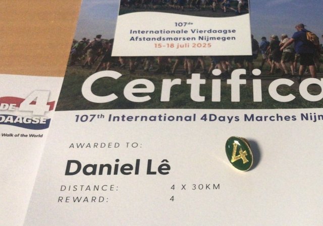 Wow, thành tích của Cuốc Tiên Ông rất chiến, bảng khen xếp hạng Tư như vậy tổng cộng anh Cuốc đi bộ 120 cây số. Amazing!