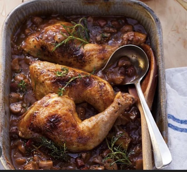 Chef Cuốc nấu món Coq Au Vin bằng đùi gà trông thật là ngon lành, đúng điệu, từ từ chầy đơ, o Tà sẽ bắt chước.