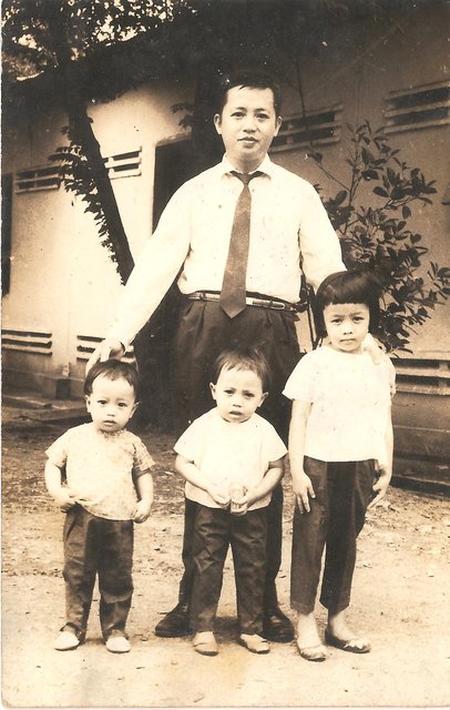 Bố chị hồi trẻ đẹp trai, sáng láng, khuôn mặt đức độ có hậu, 2 em trai nhìn chăm chăm vô người chụp, cưng chưa kìa .
