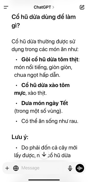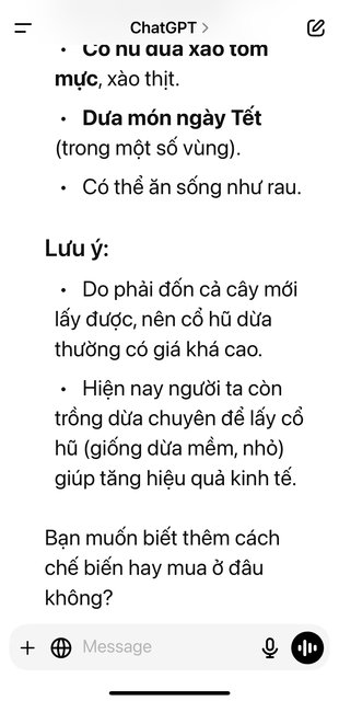 Thời đó không ai nấu chín củ hủ dừa và chỉ ăn sống chơi một miếng nhỏ, chủ yếu là mần gỏi .