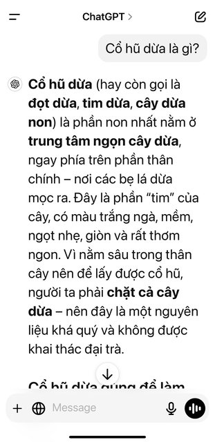 Ngày xưa cổ hũ dừa cũng là hàng hiếm, như hai bạn Linh, Tax nói, đâu phải muốn là có đâu hè, cây nào bị đuông ăn hoặc không còn sinh trái, chủ vườn mới đốn hạ lấy đọt non bên trong cây. Bây giờ bên VN còn phơi khô đóng gói bán đại lý độc quyền (Phan Diễm & Dũng), do trồng công nghiệp kiểu cung cầu như clip Thuỳ Linh mang về khi trước, lần theo link cũ đọc post cũ của chúng mình từng nói về vụ này vui ghê nha.