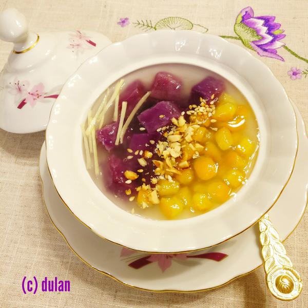 Dulan chỉ có chè khoai tím & bột lọc vỏ cam, tạm gọi là tân gia nhé huynh Thanh Xuyên: