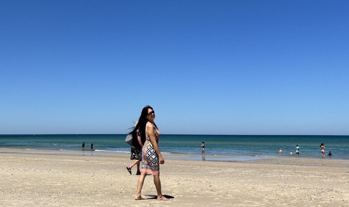 Lúc này chưa dám tắm biển, té nước chơi, vì cũng còn ảnh hưởng của algae, những bãi biển Nam Úc bị ô nhiễm hơn một năm rồi, sinh vật biển, cá chết hàng loạt, lúc trước ngày nào người ta cũng đi lượm xác cá, cua.